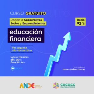 Para socios cooperativistas se invita al curso Gratuito de Educación Financiera con metodología de OIT, organizado y dictado por la Cámara Uruguaya de Cooperativas de Ahorro y Crédito de Capitalización (Cucacc) en apoyo de la Agencia Nacional de Desarrollo (Ande).